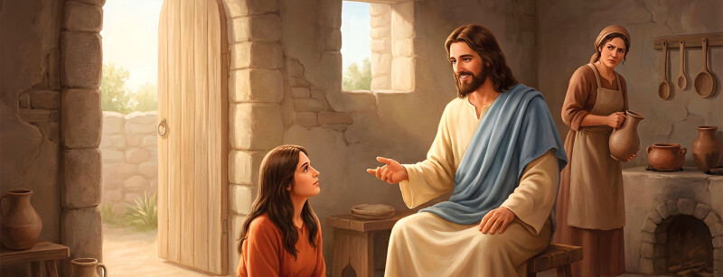 Analisando melhor esta história, percebemos que Maria não se limitou a não fazer nada, deixando a sua irmã sobrecarregada, mas «sentada aos pés de Jesus» – a postura dos discípulos — procurou alimentar-se da Palavra de Jesus, escutá-Lo, aprender do Mestre. A escuta de Maria não foi uma fuga ao trabalho, às responsabilidades, mas sim uma resposta à amizade com Jesus e à importância que os ensinamentos de Jesus tinham para ela, lembrando-nos de que devemos buscar primeiro o Reino de Deus. Ou seja, não podemos esquecer a fonte principal de cada uma das nossas acções: a escuta da Palavra do Senhor e estar aos pés de Jesus, na atitude do discípulo.
