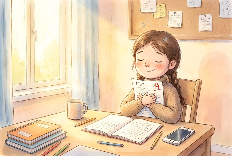 No teste seguinte, teve 14. Menos do que antes. Mas quando saiu da sala, respirou fundo e sorriu.