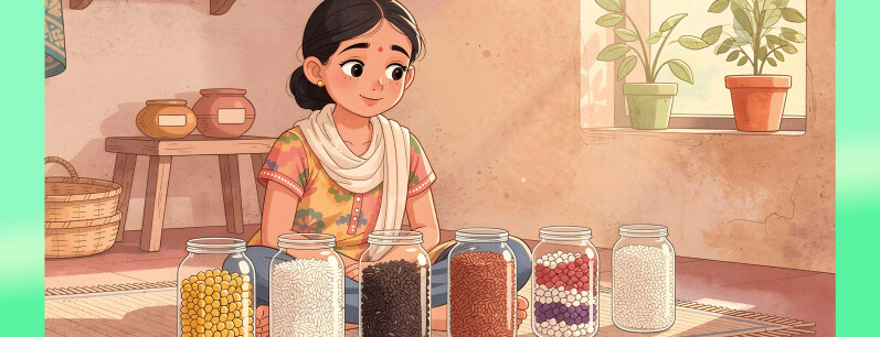 Harshita decidiu seguir as pisadas de Kamala Pujari. Foi assim que nasceu o seu projeto: uma coleção de sementes locais e regionais de vários tipos de arroz, de milho e de outros cereais e plantas, que ela começou por guardar em casa, em pequenos frascos de vidro.